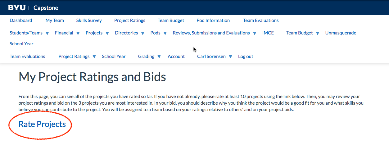 Then, click on the Project Ratings item on the menu bar at the top of the page.